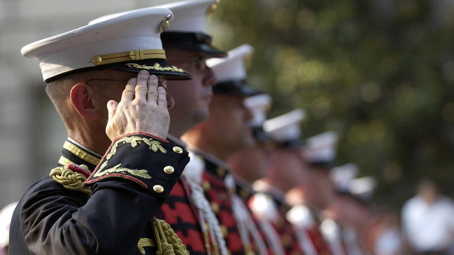 Soldiers inline saluting